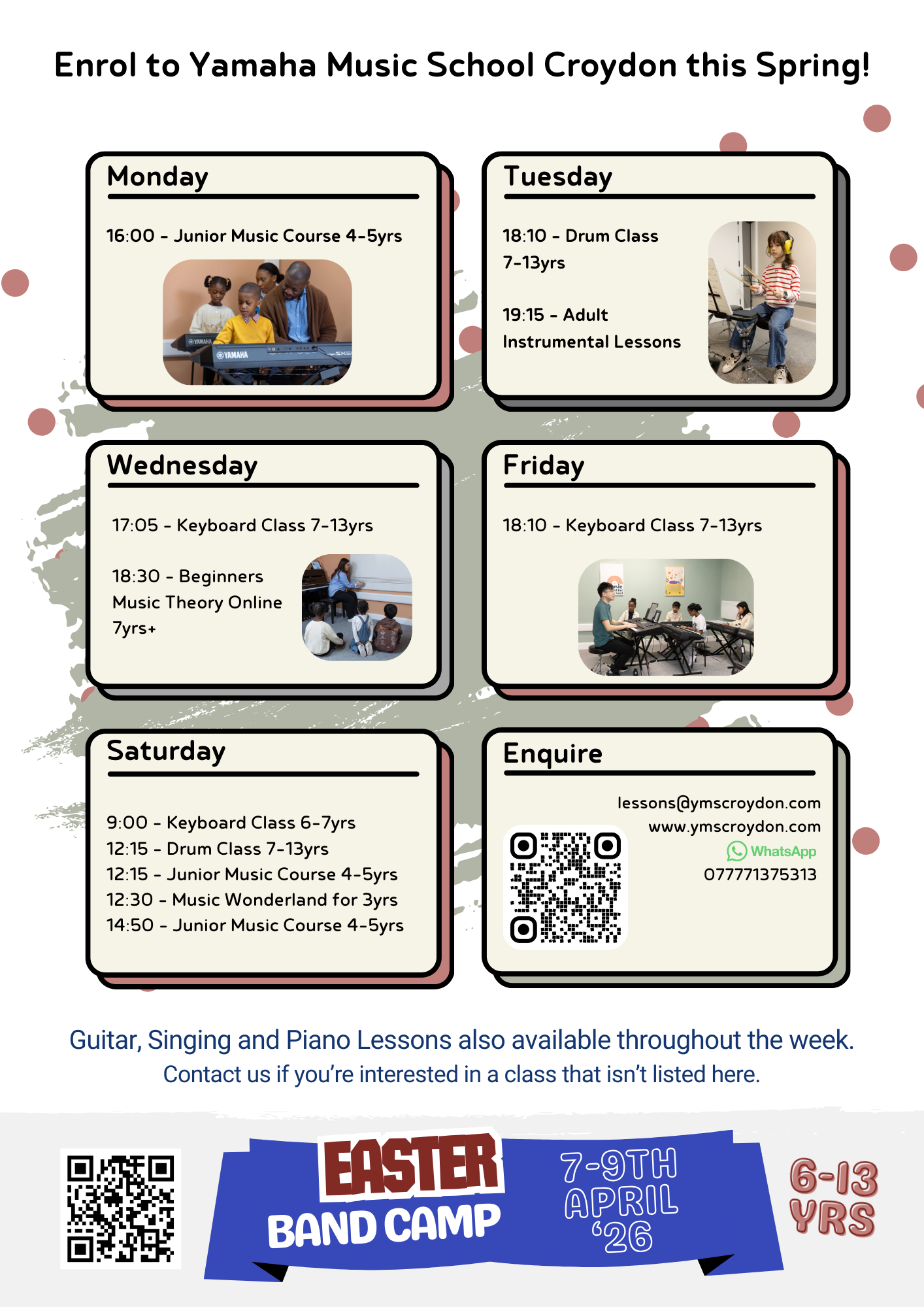 Our classes take place every week during term time which is around 38 weeks per year.